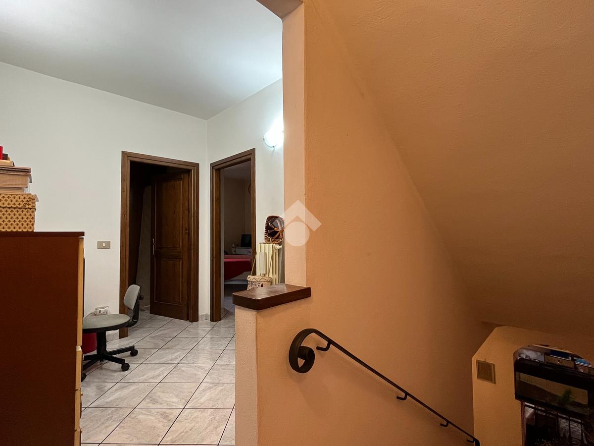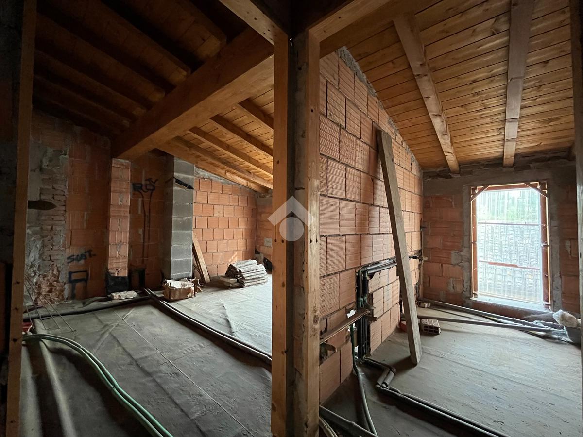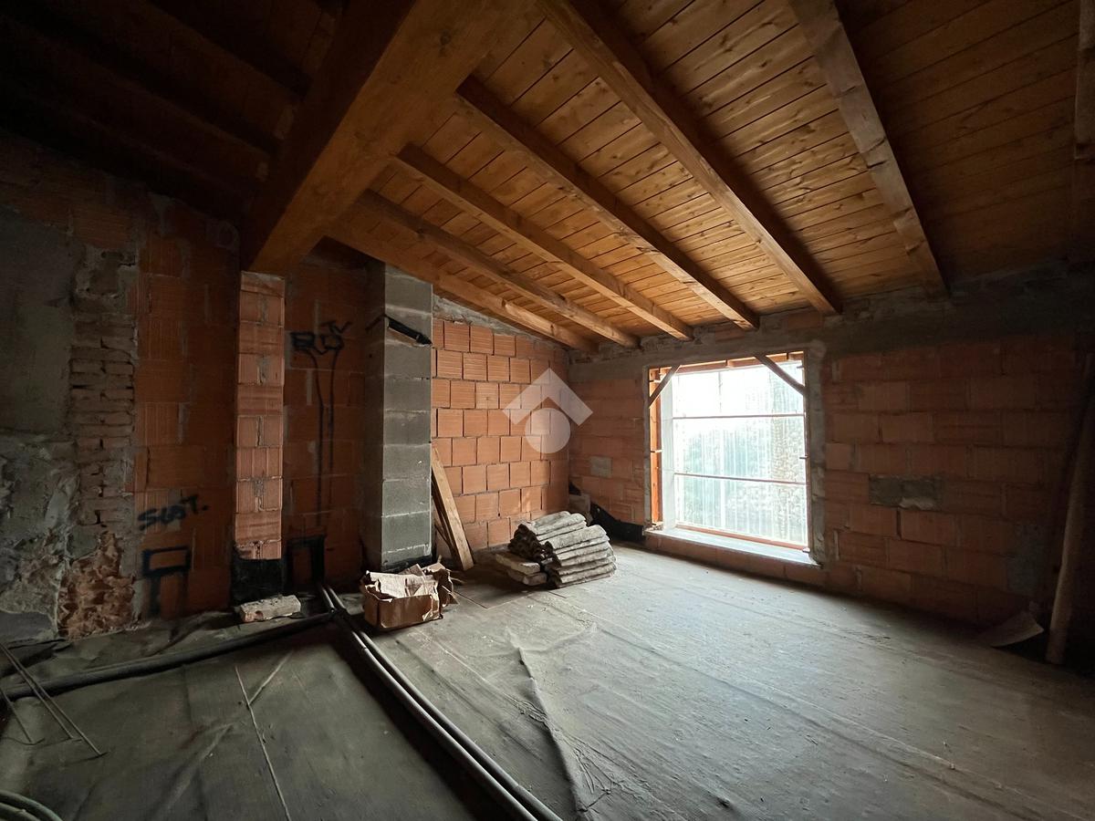 Dotato di ingresso indipendente e di un piccolo giardino di 15mq, l'immobile è disposto su 3 livelli, dove al piano terra troviamo la zona giorno con cucina abitabile, camino, bagno finestrato e accesso al garage doppio, primo piano composto da camera matrimoniale, camera singola, camera 3/4 e secondo bagno, ultimo piano con tetto in legno a vista è completamente al grezzo dove è possibile creare la seconda zona notte oppure un bilocale.