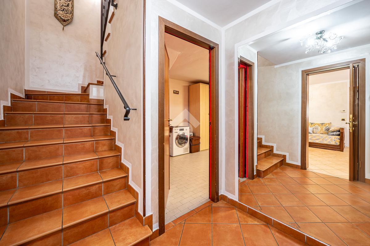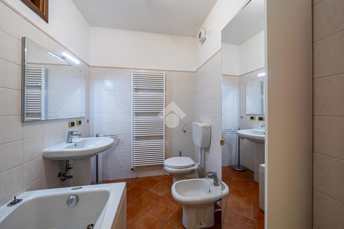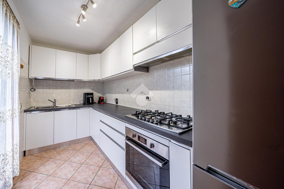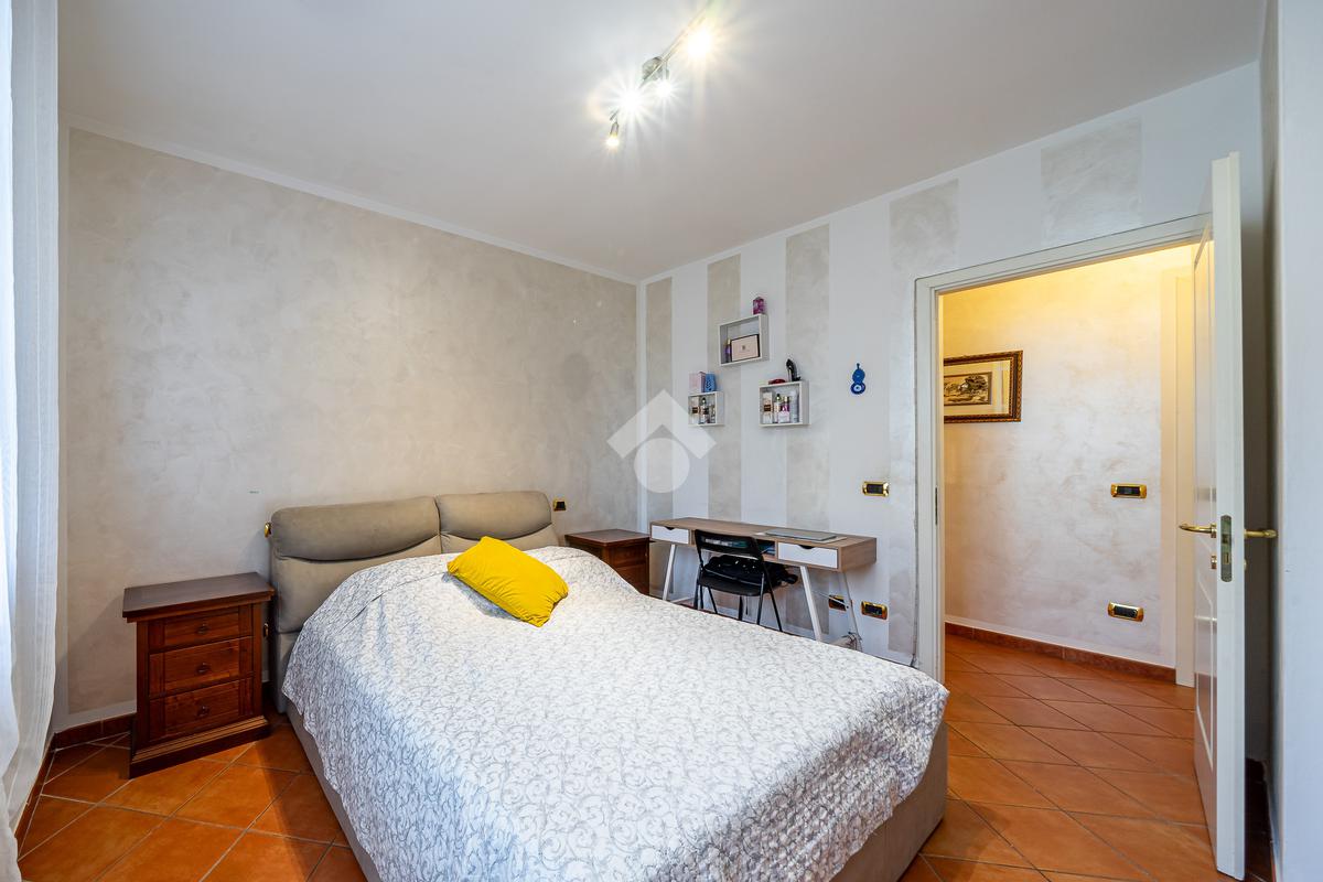 A completare l'immobile abbiamo un garage ampio di 34mq accessoriato di zona lavanderia, posto auto esterno, illuminazione esterna, video sorveglianza, irrigazione esterna, inferriate, zanzariere e doppi vetri.
