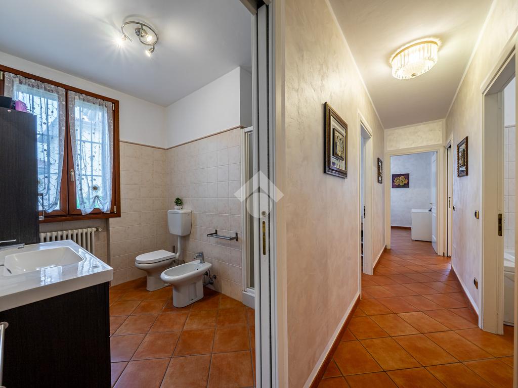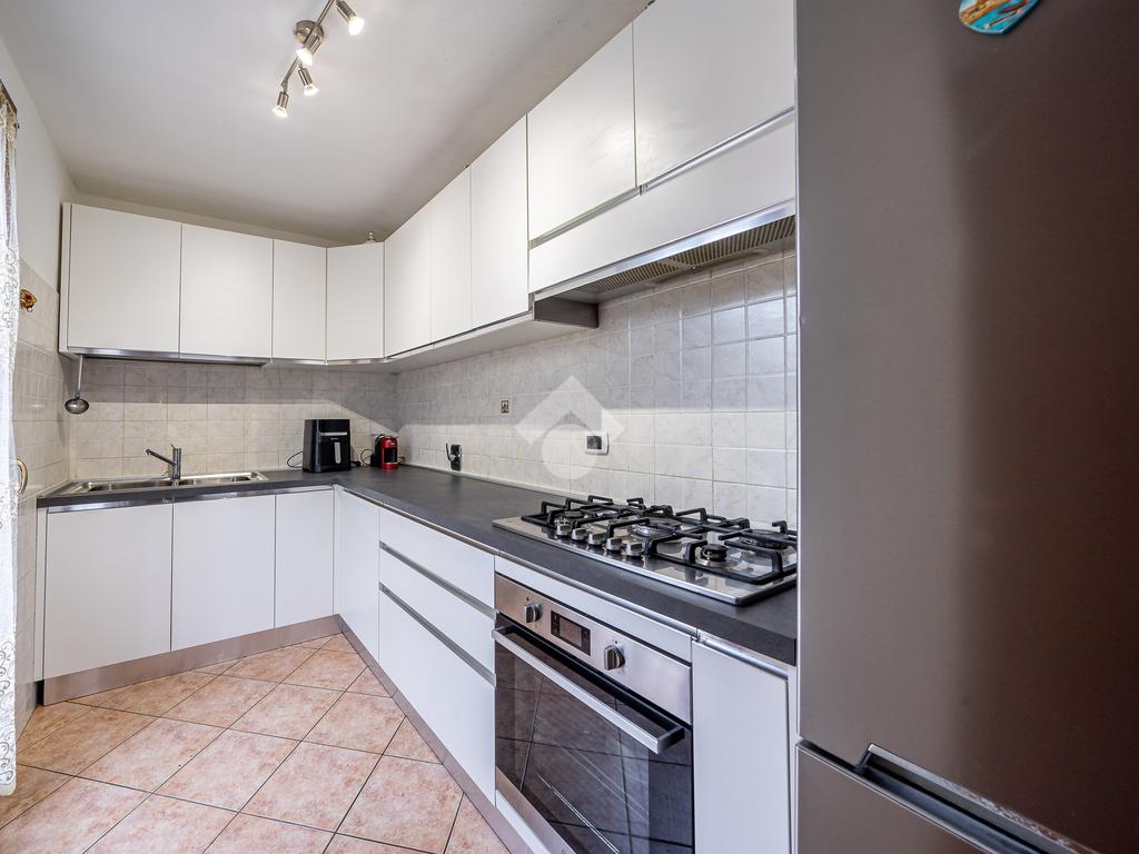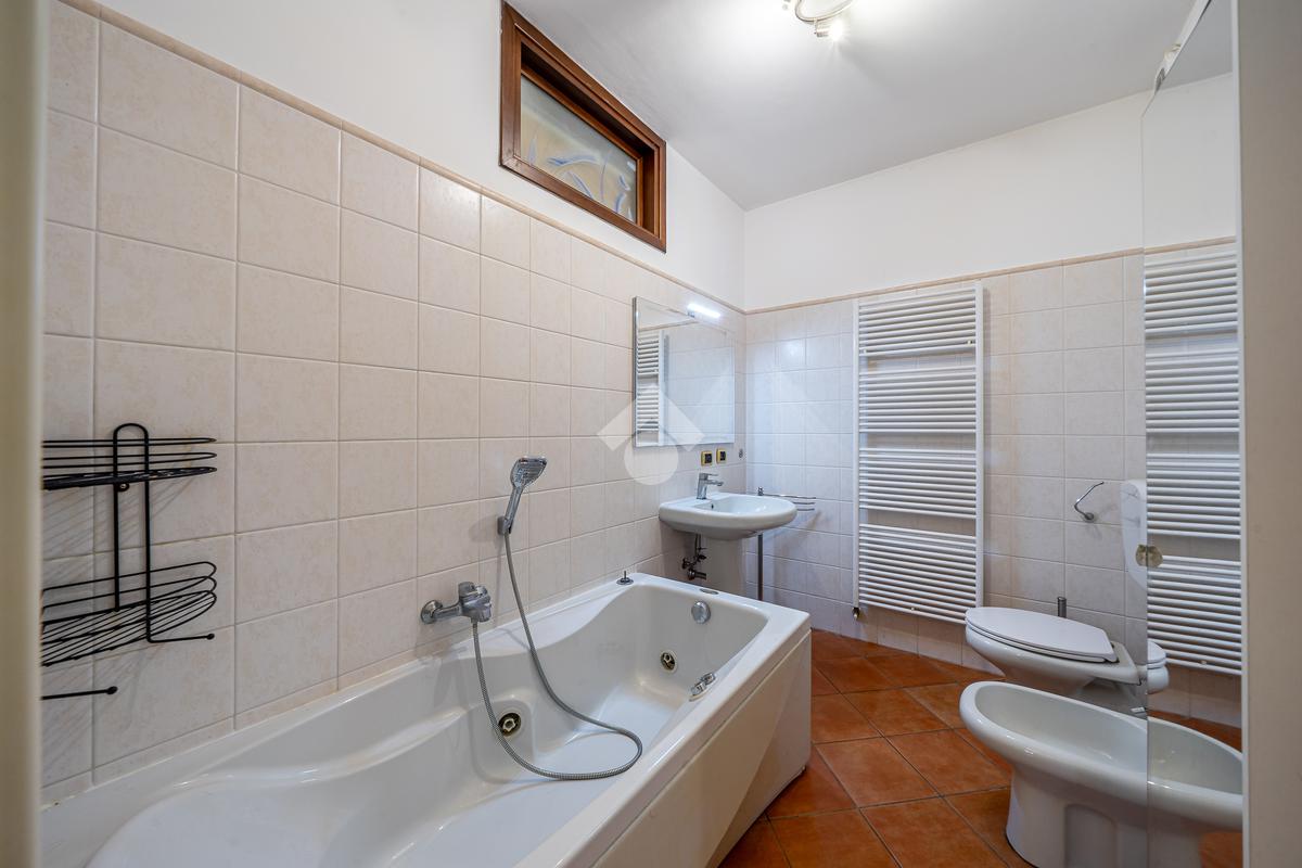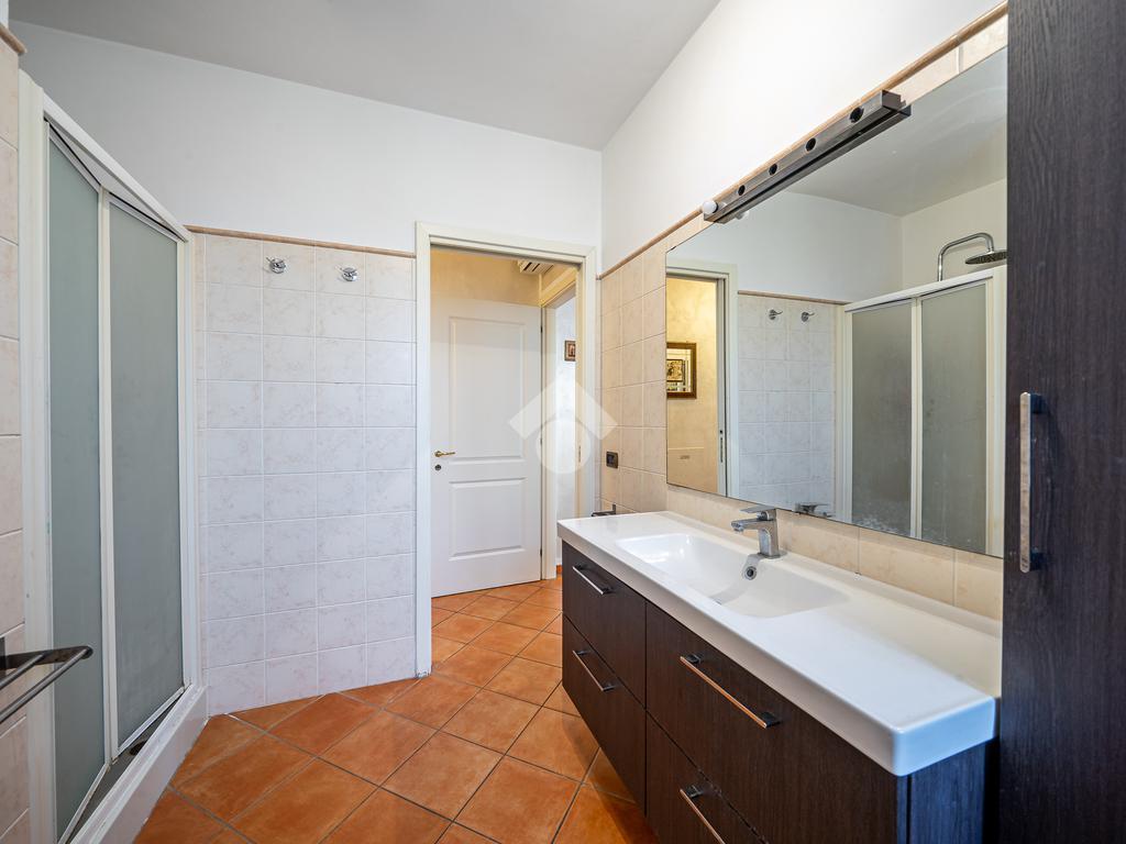 A completare l'immobile abbiamo un garage ampio di 34mq accessoriato di zona lavanderia, posto auto esterno, illuminazione esterna, video sorveglianza, irrigazione esterna, inferriate, zanzariere e doppi vetri.