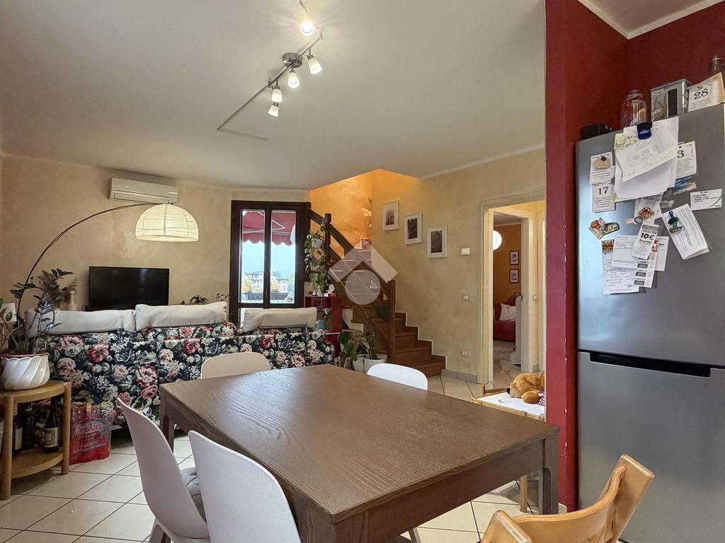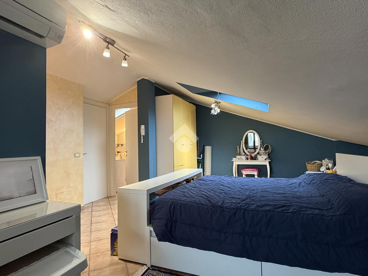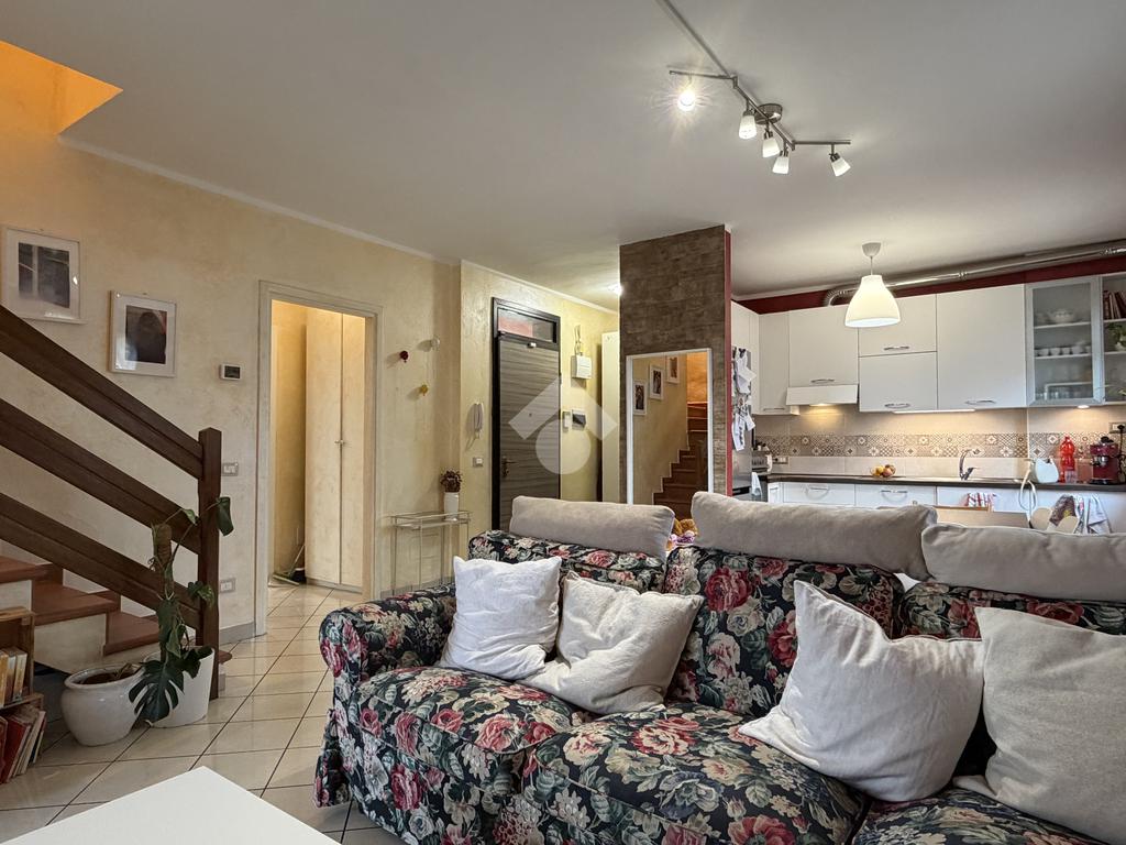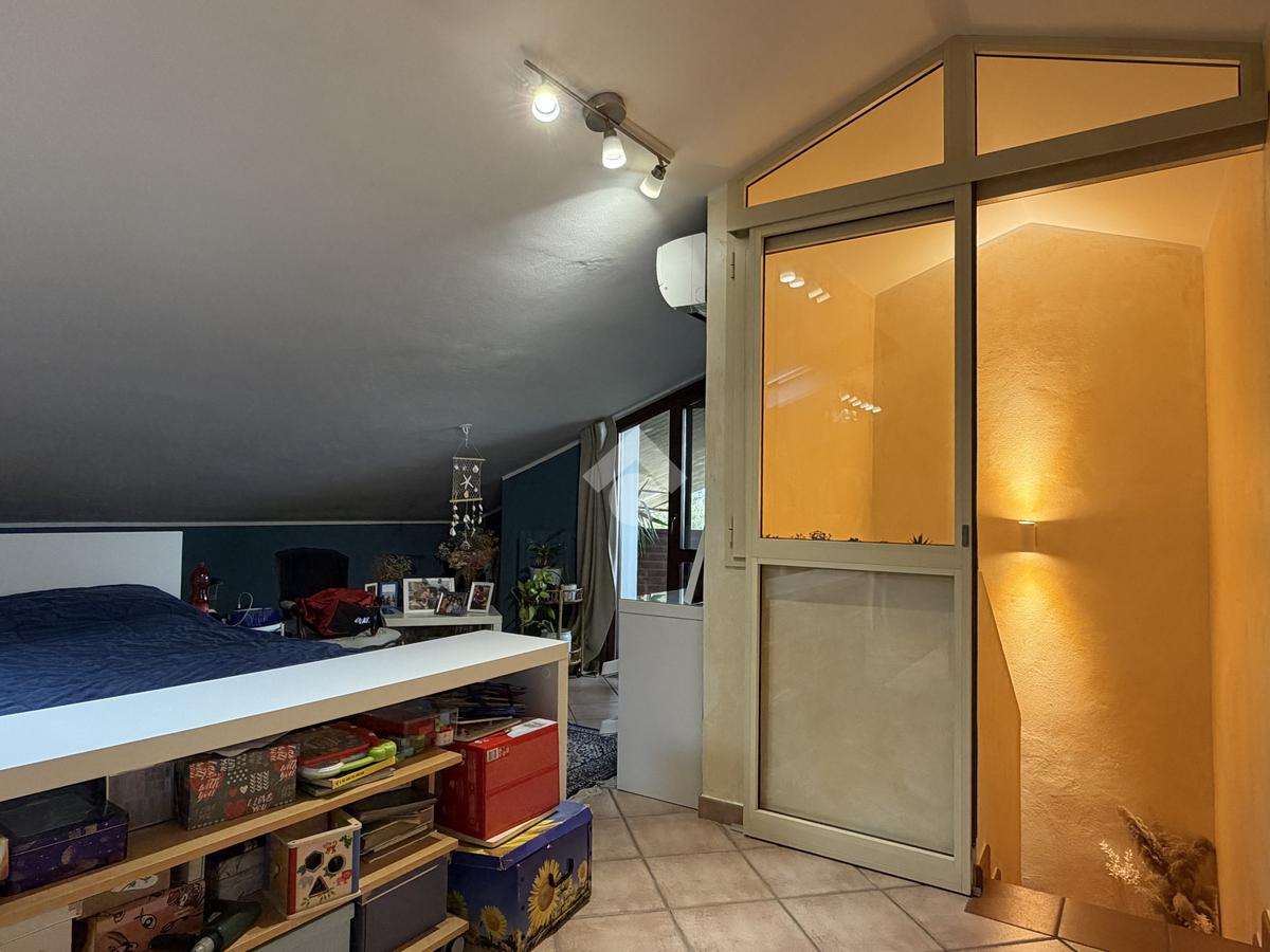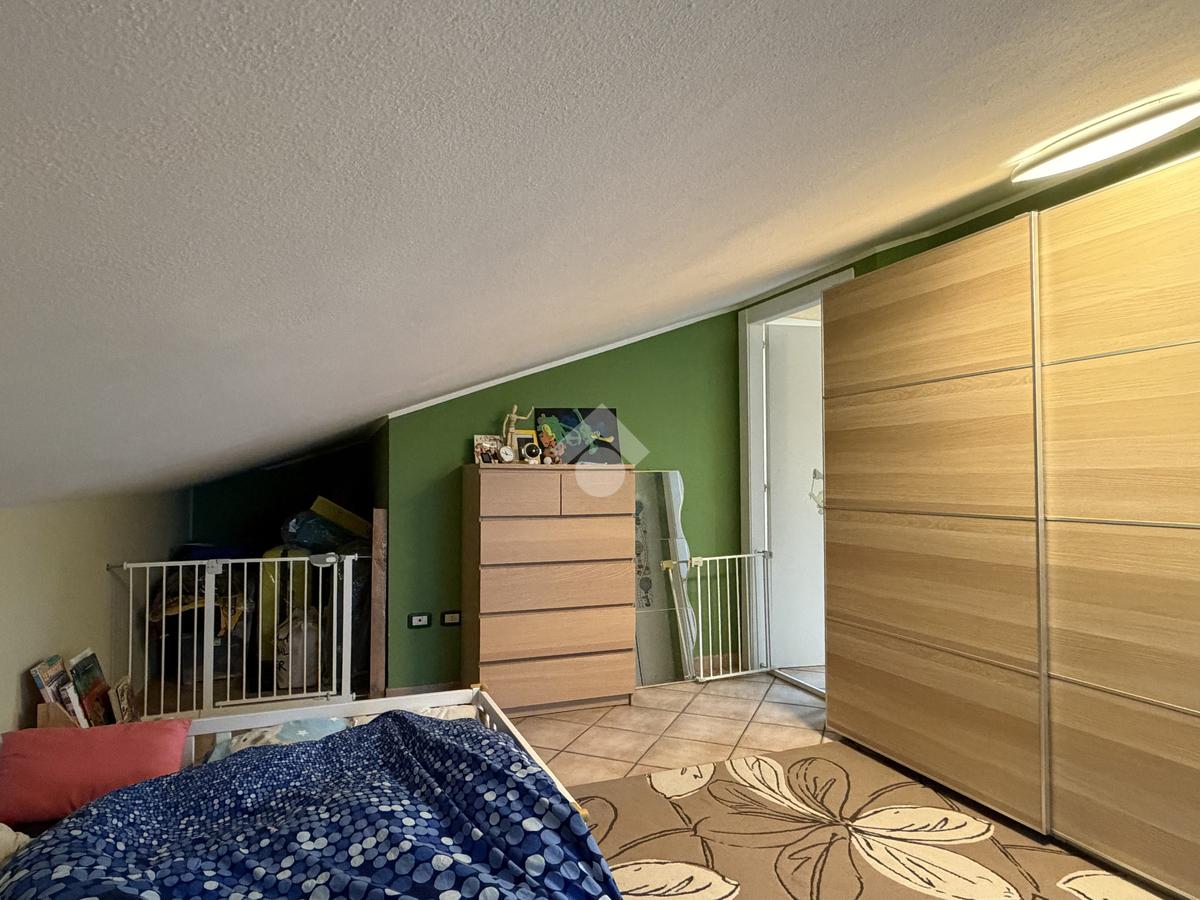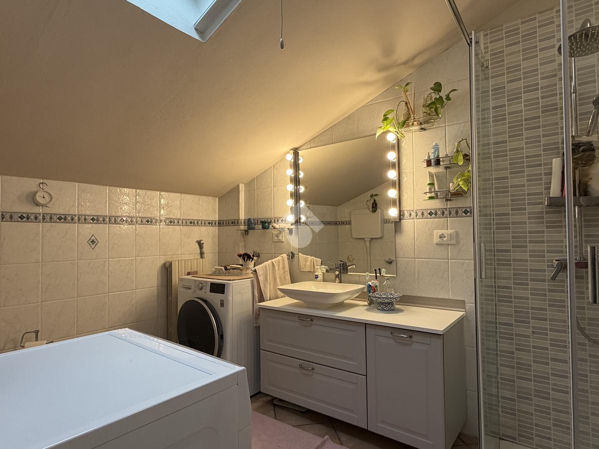 Composto da zona giorno open space con cucina abitabile, loggia, bagno finestrato e camera da letto matrimoniale, scala interna dove troviamo due camere mansardate, bagno con velox elettrico e seconda loggia, comprensivo di garage singolo.