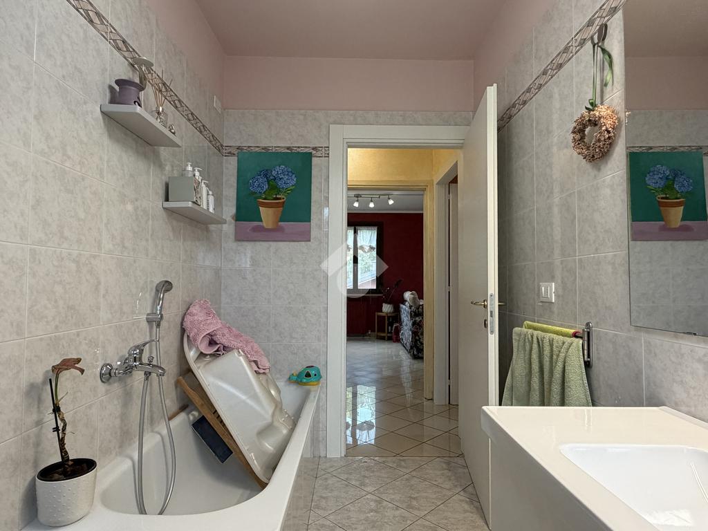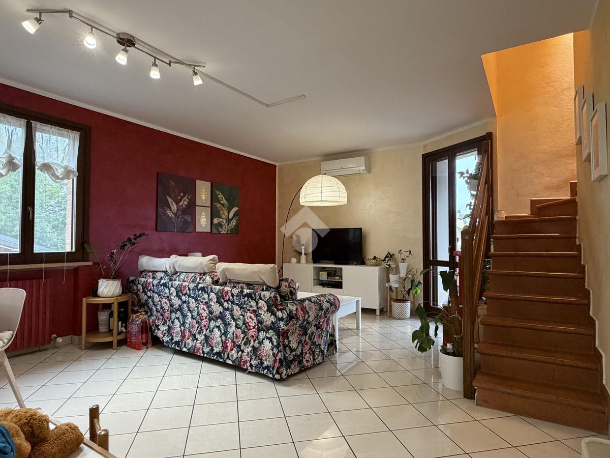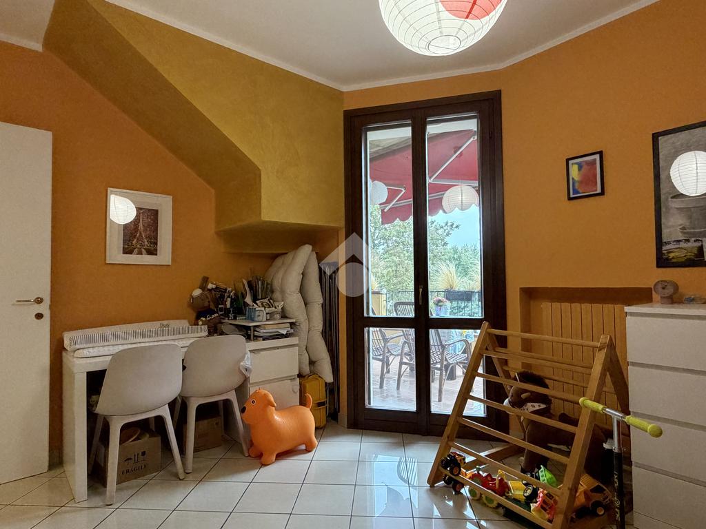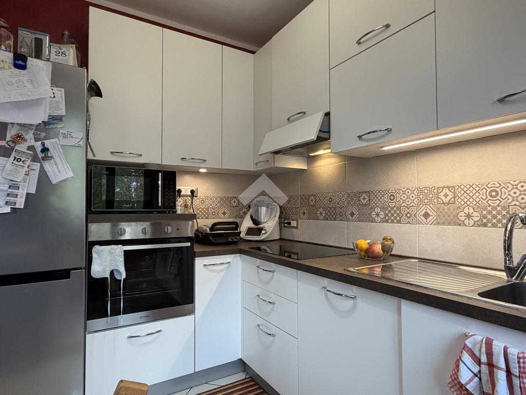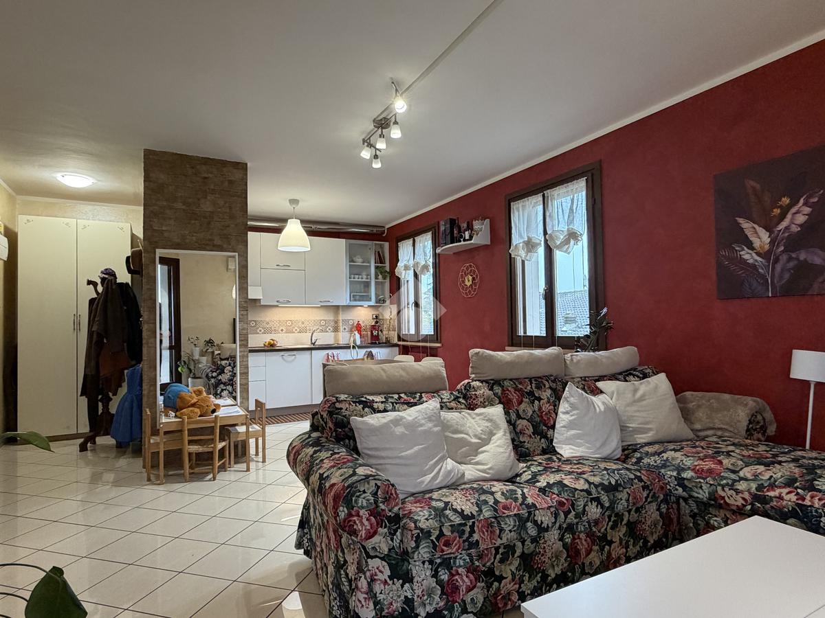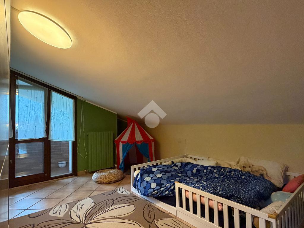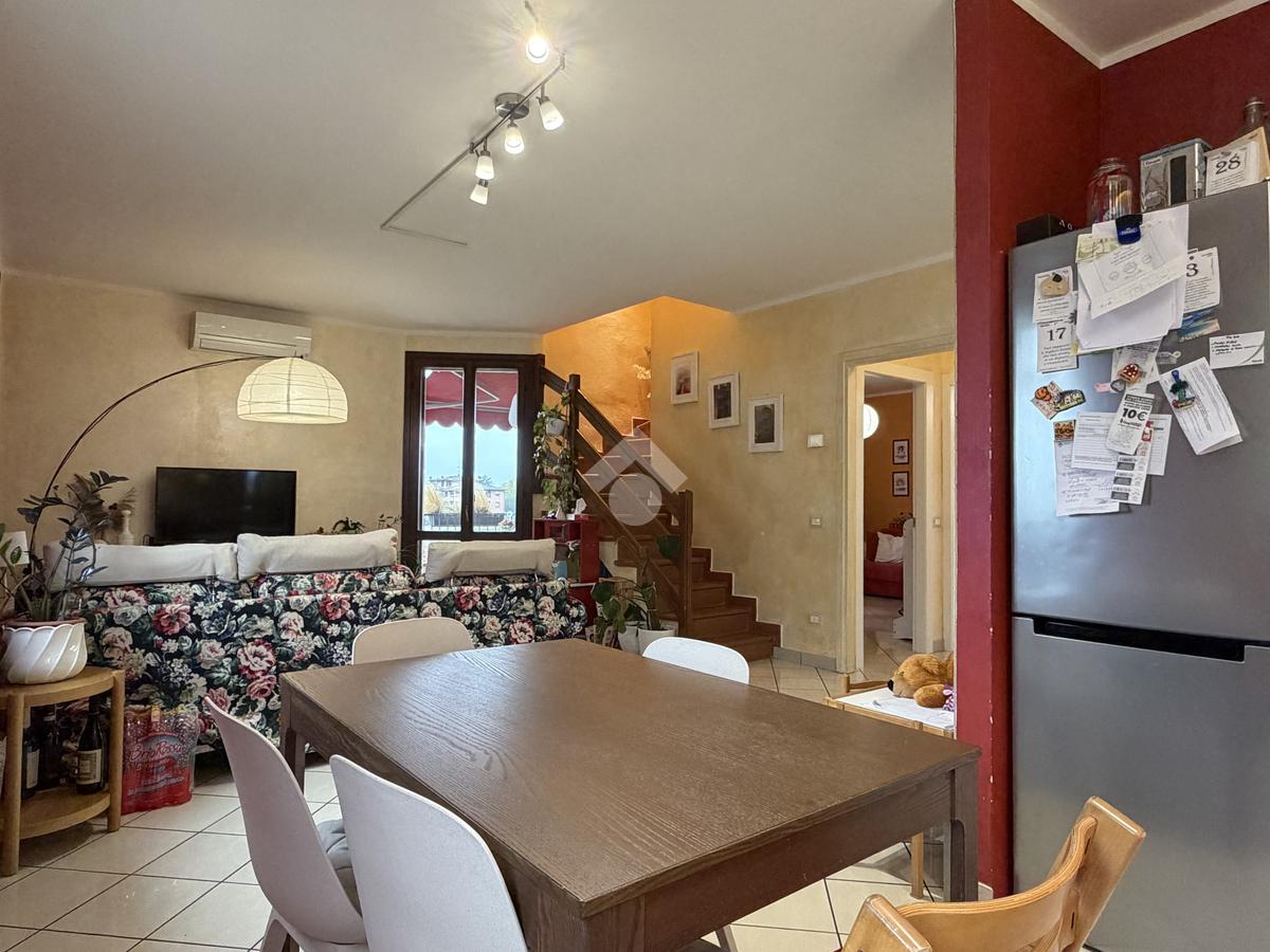 Composto da zona giorno open space con cucina abitabile, loggia, bagno finestrato e camera da letto matrimoniale, scala interna dove troviamo due camere mansardate, bagno con velox elettrico e seconda loggia, comprensivo di garage singolo.