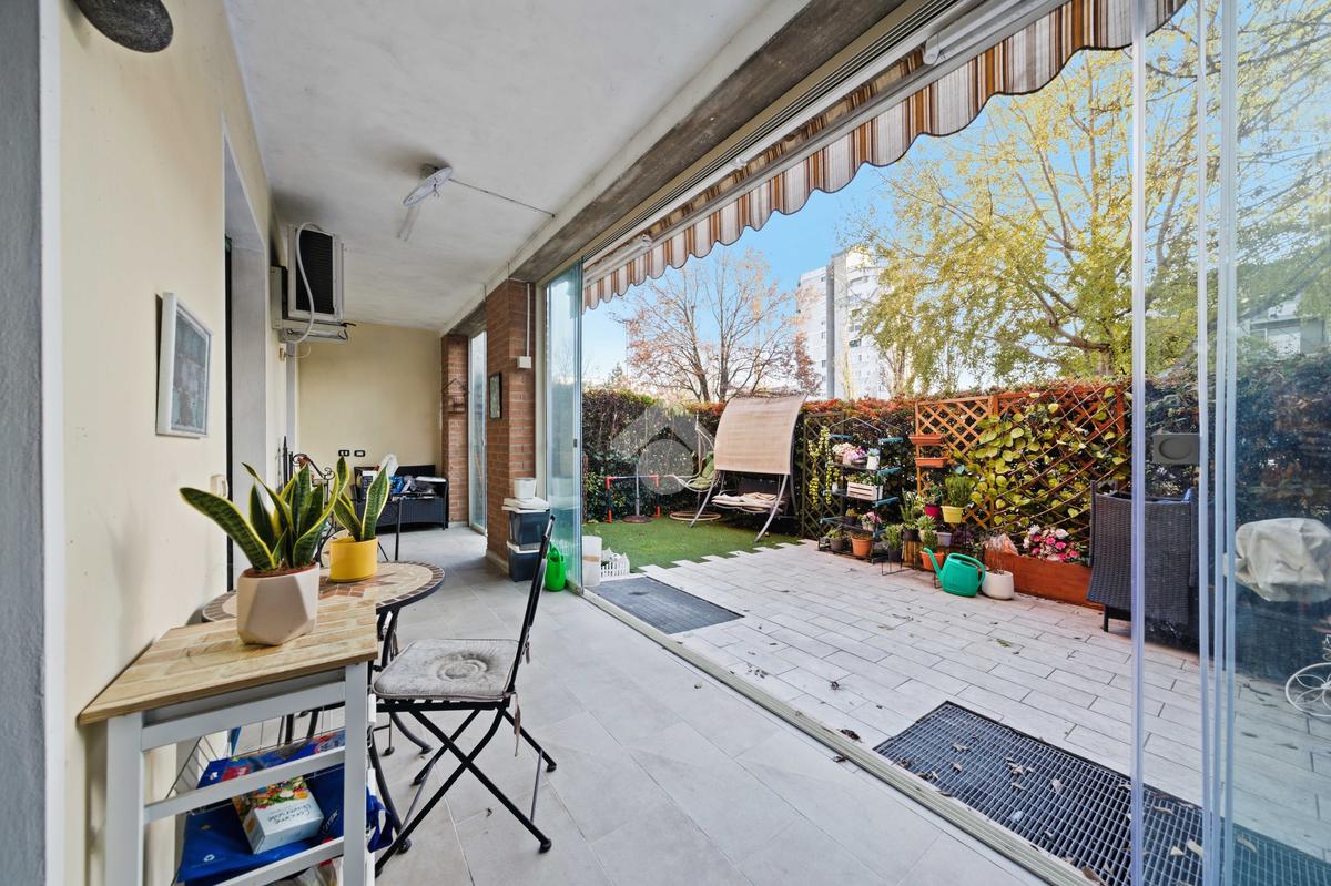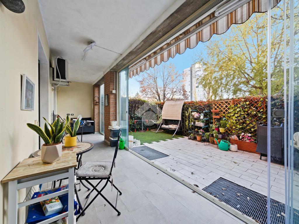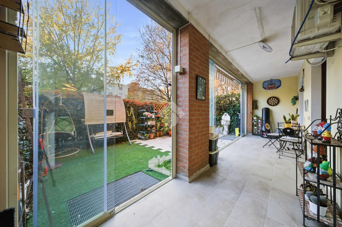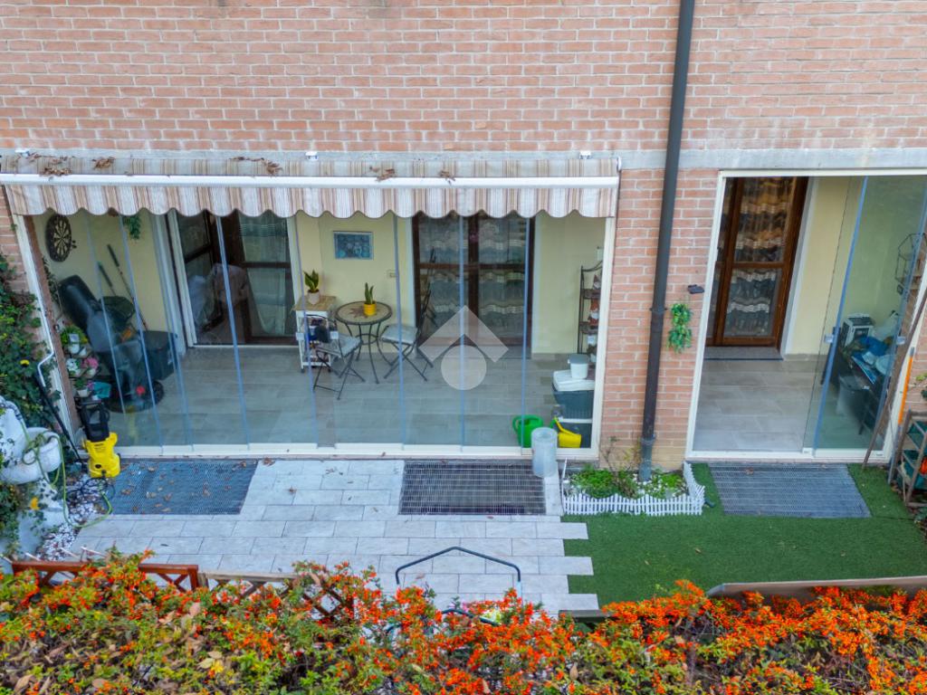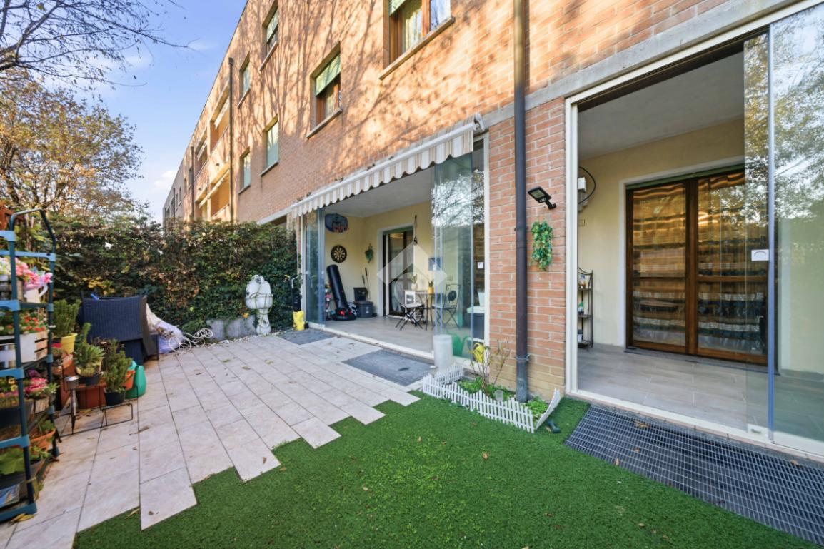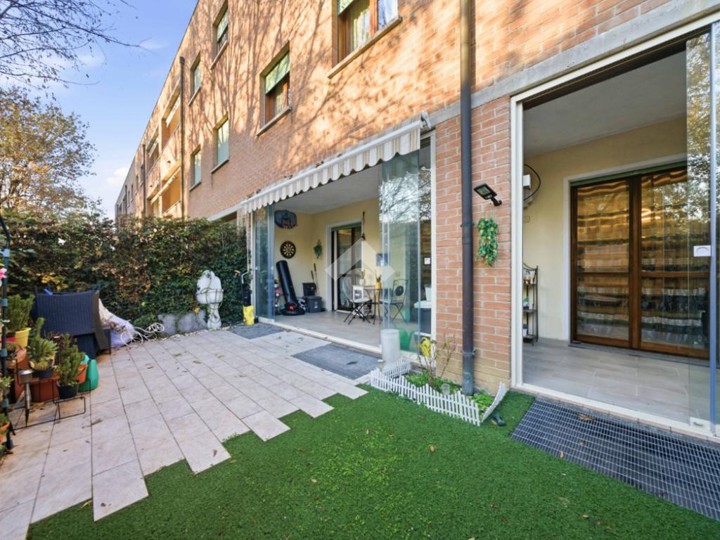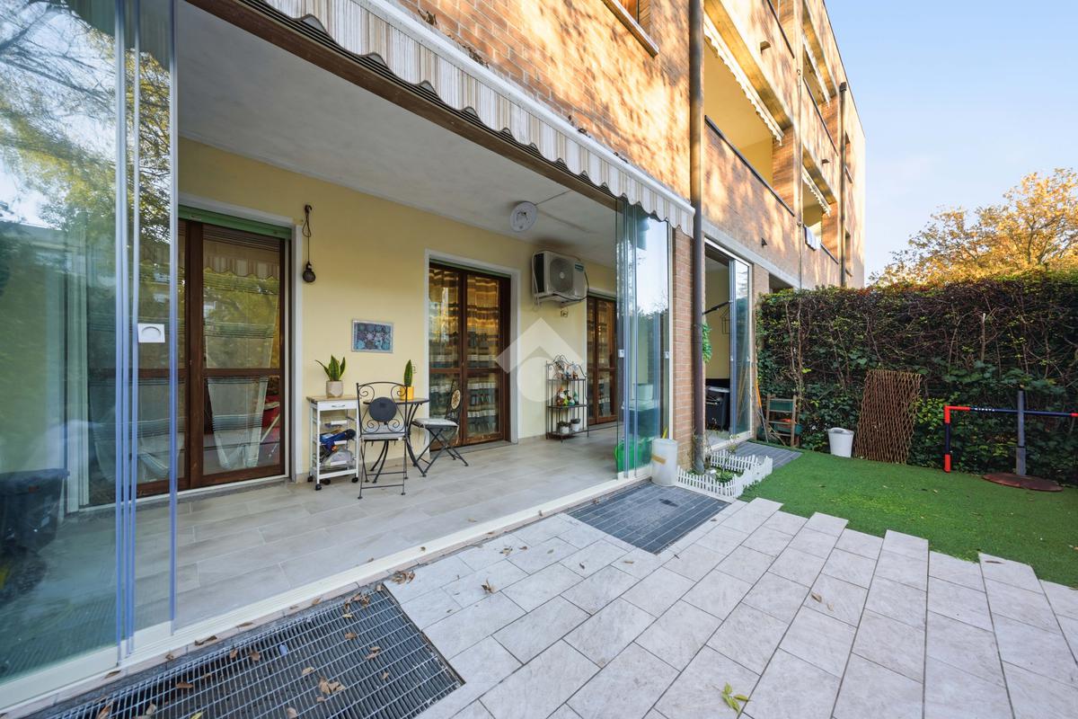 Pieve Modolena: Trilocale al piano terra con giardino di 40mq con doppia veranda.