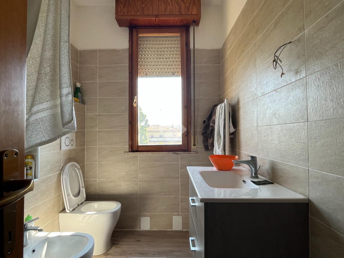 Pieve Modolena, trilocale al secondo piano con ascensore parzialmente ristrutturato situato in strada chiusa.