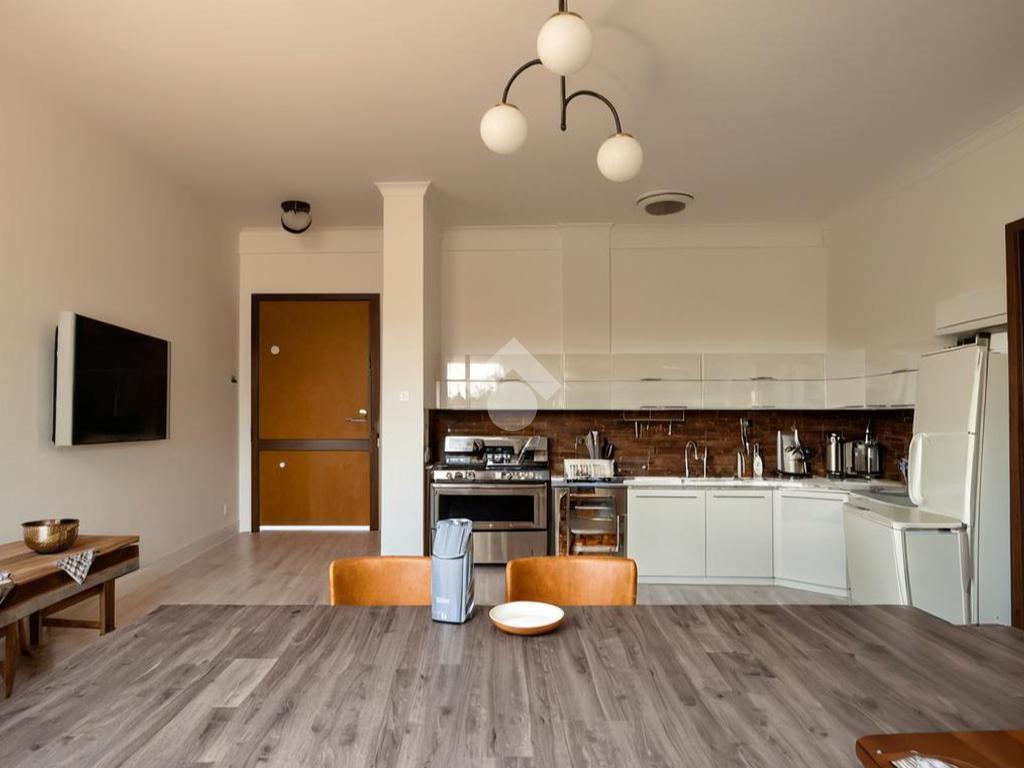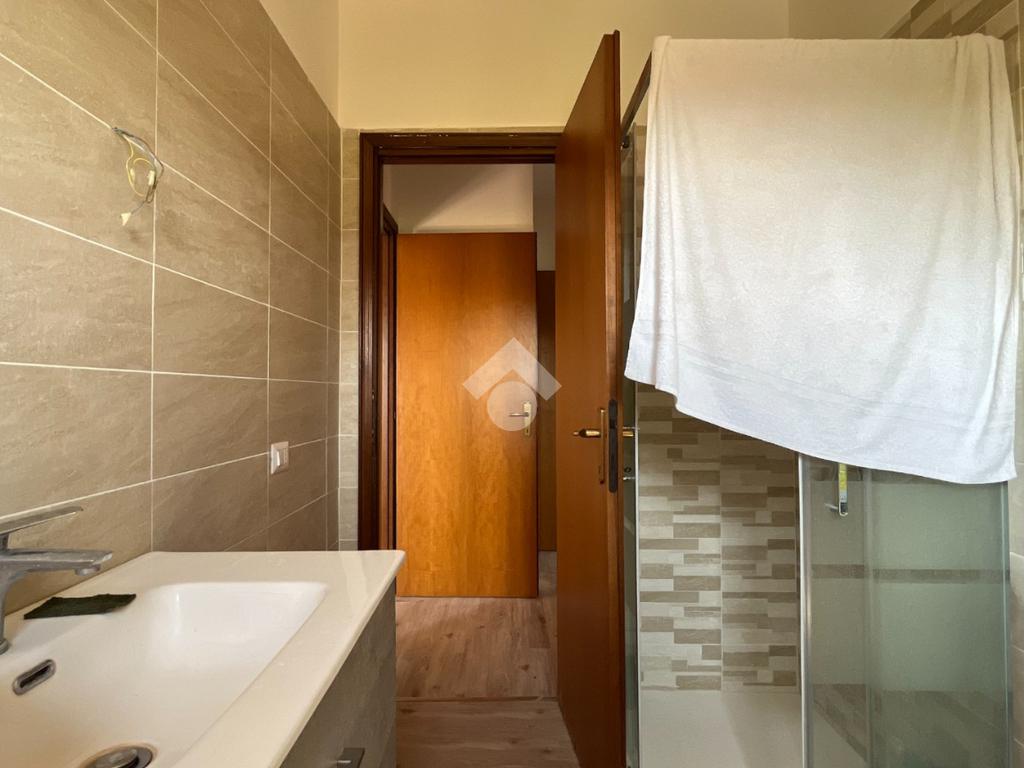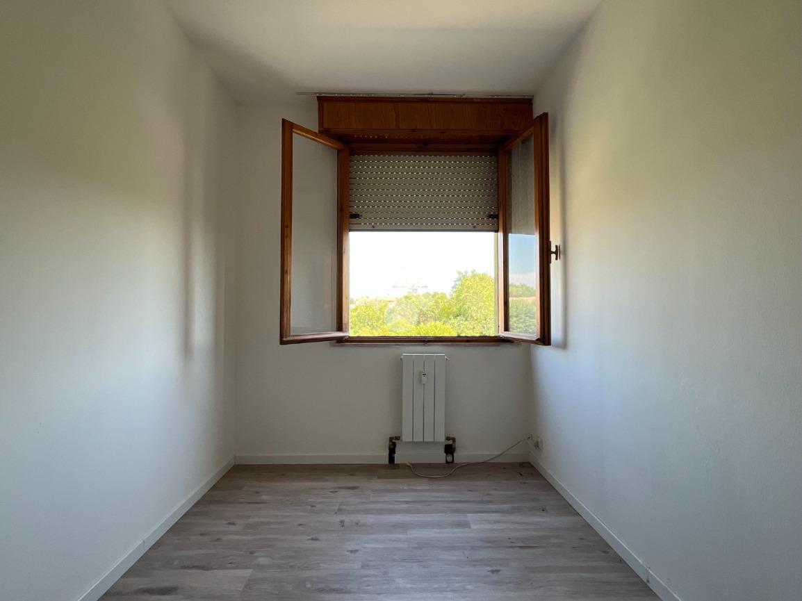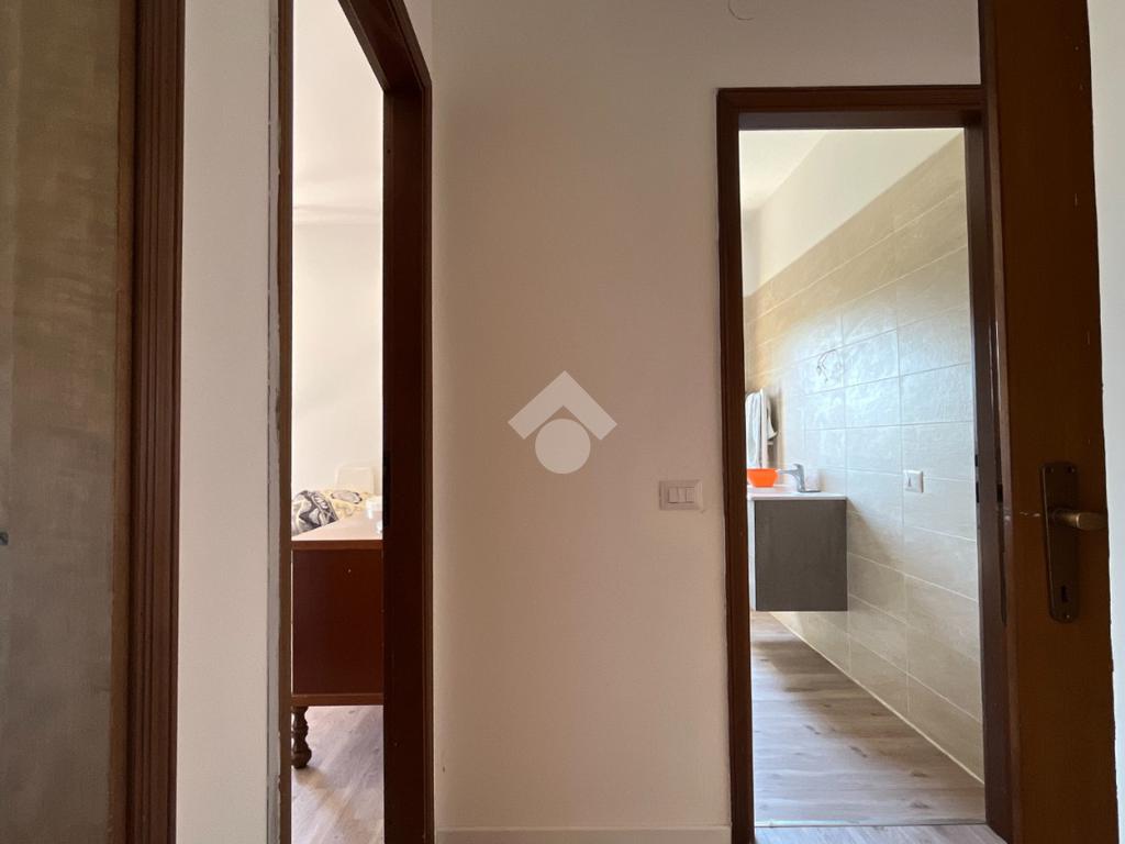 L'appartamento è composto da sala con angolo cottura open space, balcone, disimpegno con bagno finestrato, camera matrimoniale, camera singola e ripostiglio; Al piano terra cantina e garage di pertinenza.