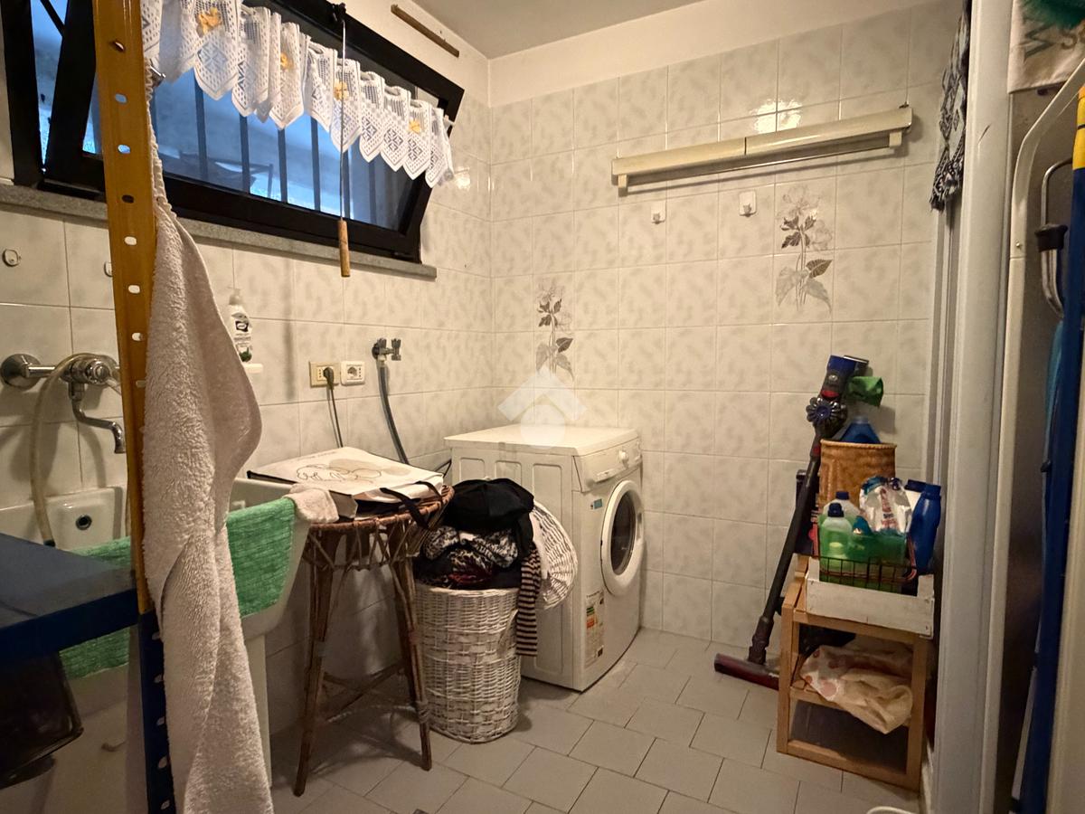 L'immobile è composto da zona d'ingresso, soggiorno, cucina abitabile, terrazzo, 2 camere matrimoniali e due bagni, cantina, lavanderia, garage doppio e giardino privato.