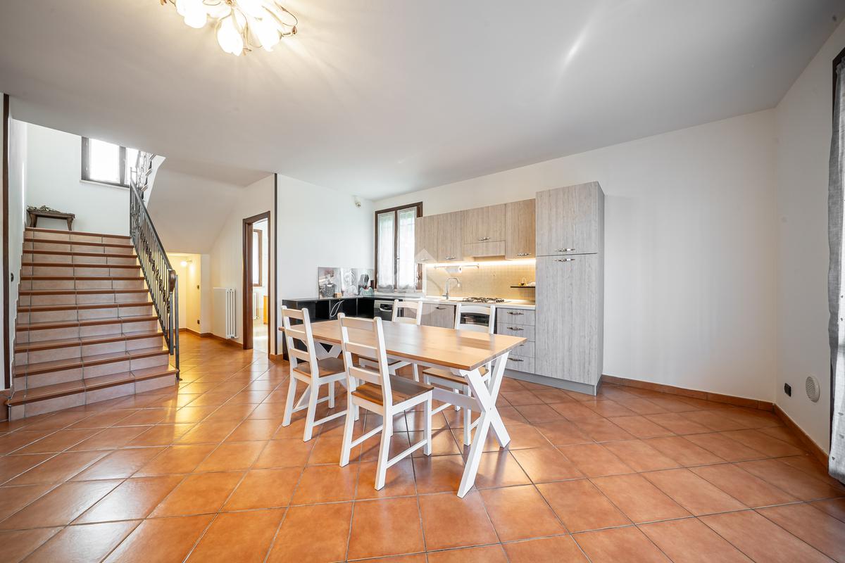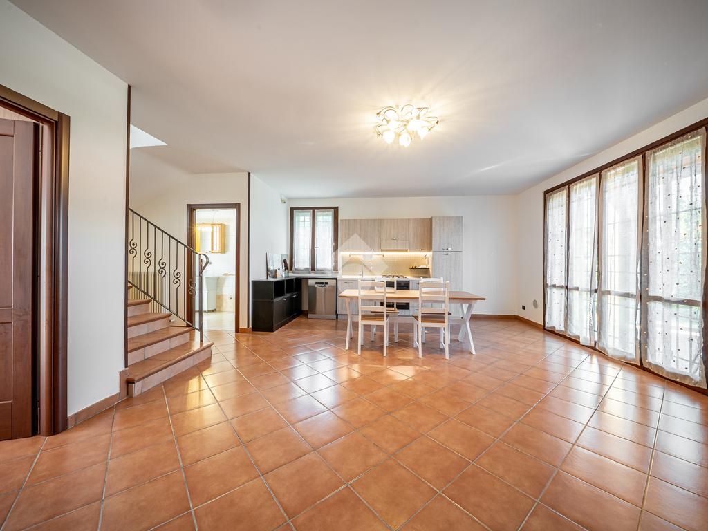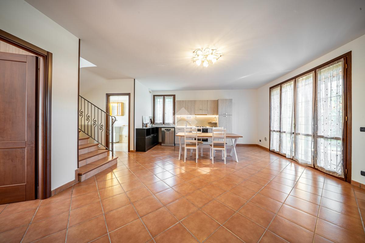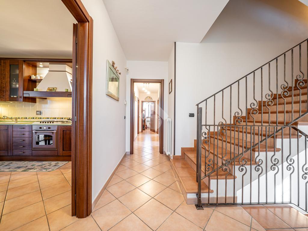 La casa si sviluppa su tre livelli, con un ampio giardino su quattro lati, e accoglie fin dall’ingresso con ambienti ampi e luminosi, al piano terra troviamo la zona giorno, spaziosa e ben distribuita, affiancata da uno studio riservato, perfetto per lavorare da casa in totale quiete. A completare il piano troviamo un comodo bagno, un locale magazzino e un garage doppio in larghezza, direttamente collegato all'abitazione.