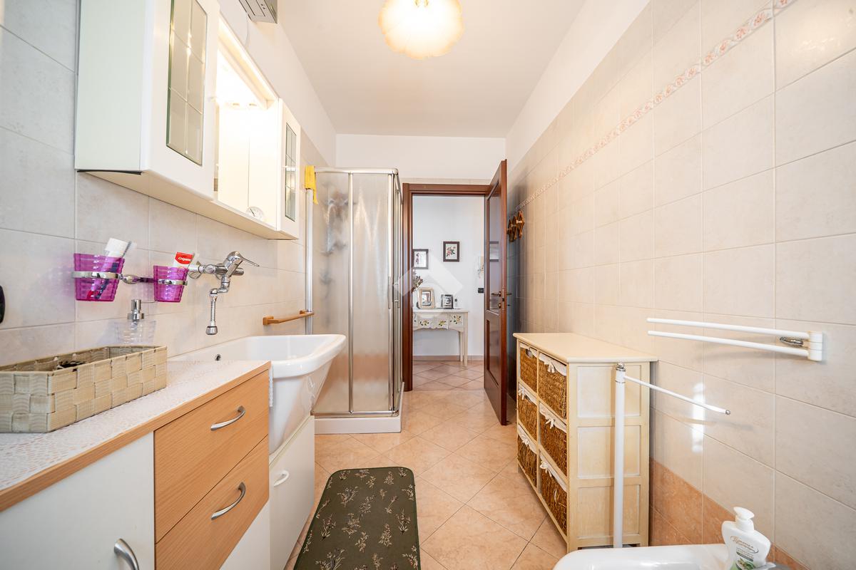 Salendo al primo piano, la zona notte offre tre camere matrimoniali, caratterizzate da ampi spazi, due bagni finestrati, cucina abitabile separata e funzionale, si affaccia sull' ampio terrazzo, per non farsi mancare la praticità, comodo ripostiglio.
